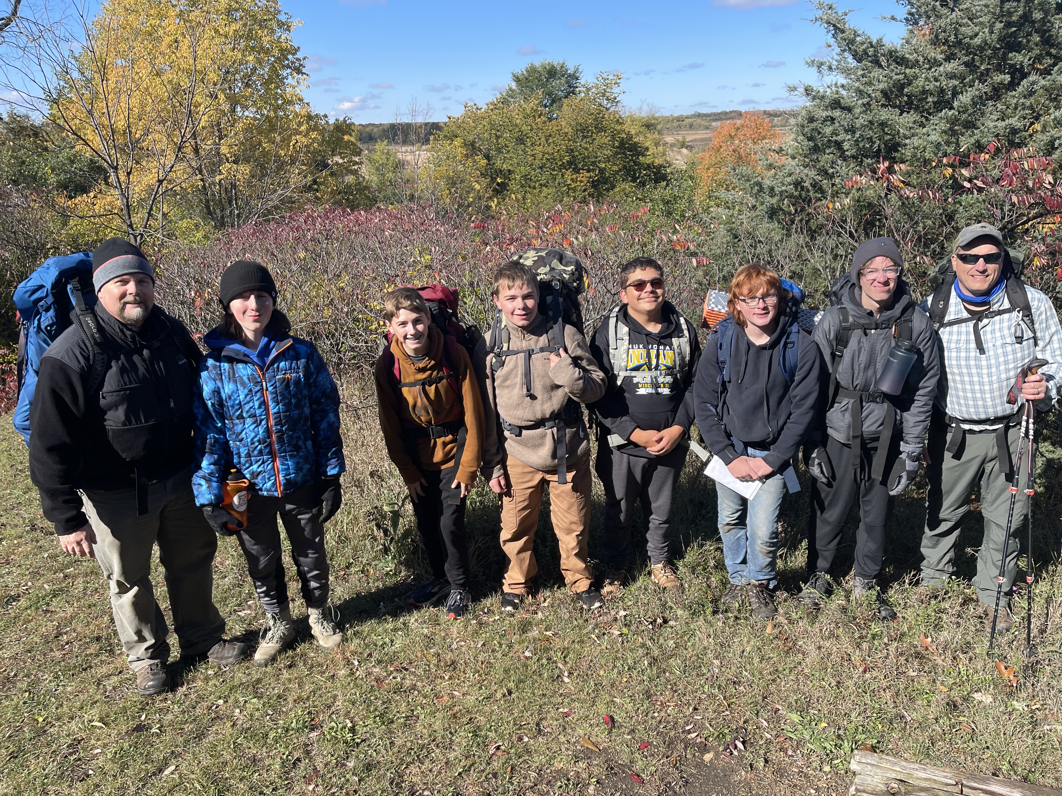 How do you prepare for High Adventure? Well, the 2023 Philmont Crew along with some other fellow Scouts from Troop 152 planned and then took a 2-night trip to Wadewitz Park on a on a fall preparation hike. As fall in Wisconsin is always changing, they enjoyed, rain, sleeping in temps below freezing, and a beautifully sunny but brisk day to set out on a 5-mile hike carrying full packs. Upon returning to camp, they enjoyed a campfire and sampled some of their cooking as they worked to prepare some dehydrated back packing meals. Come early spring in 2023 until their trip in June they plan on getting in several more trips to get ready for their trip to Philmont in June of 2023.